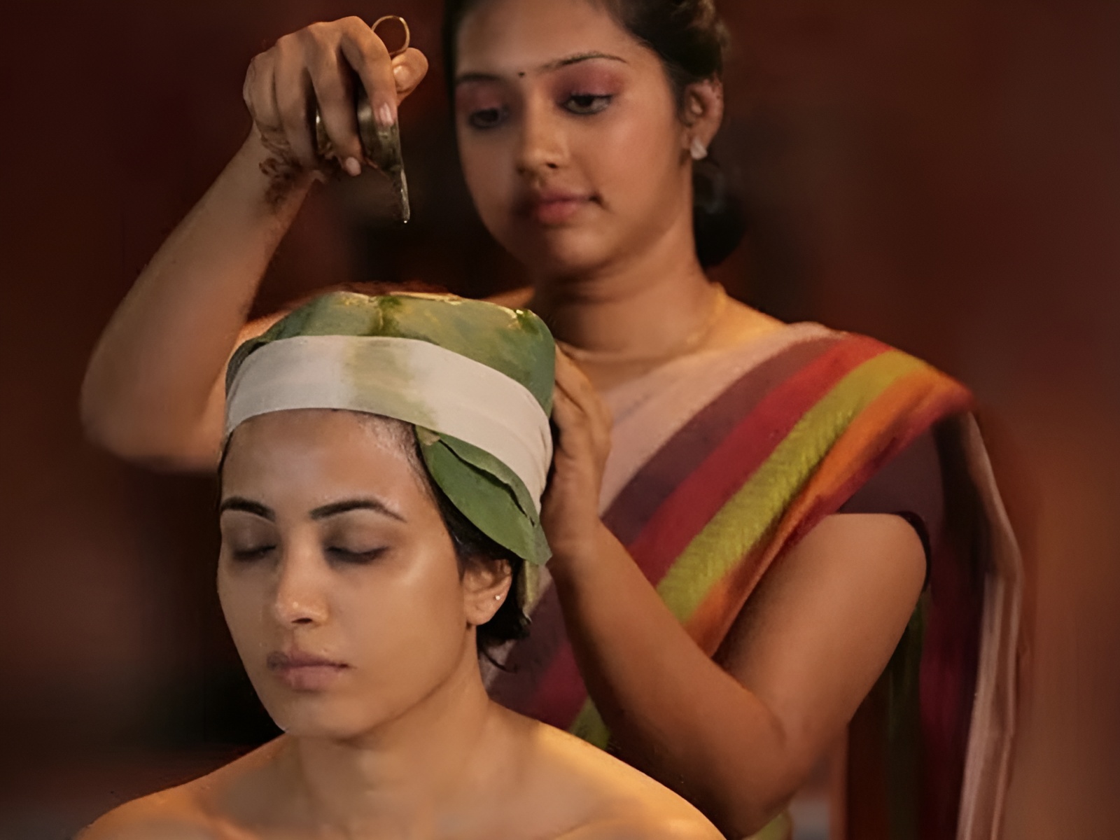 Therapeutic herbal oil massage for relaxation and rejuvenation