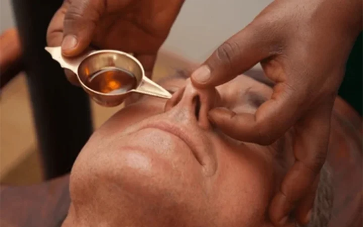 Warm, medicated herbal oils or extracts are gently administered through the nasal passages to cleanse accumulated toxins from the sinuses, brain channels, and respiratory tract. This deeply therapeutic ritual enhances oxygen flow, sharpens the senses, and restores lightness to the head and mind.